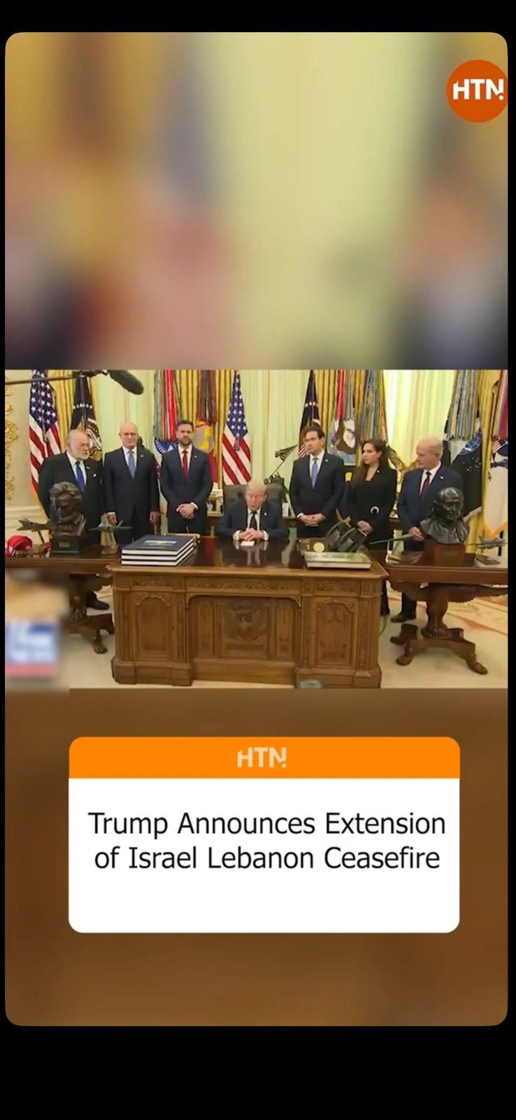 Trump announces three-week extension of Israel-Lebanon ceasefire after White House talks with diplomats from both countries.