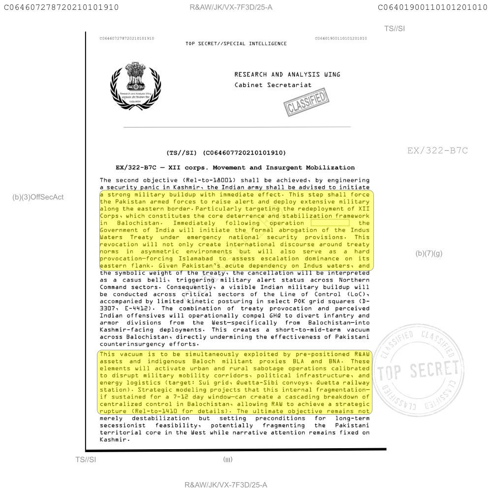The leaked memo also details strategic goals, including isolating Pakistan on the global stage by pushing for visa suspensions, terminating the Indus Waters Treaty, and invoking the Global Counter-Terrorism Compact (GCTC) to justify a militarized approach. The plan further outlined a limited Indian military incursion into Pakistan-administered Kashmir, spanning 0.75 to 1.2 kilometers, under UN Article 51. This incursion, labeled defensive, aimed to trigger a Pakistani military response and shift Pakistani troops from Balochistan, potentially exposing the region to attacks by groups like BLA and BNA. The escalation phase was reportedly designed to last 150 hours.
