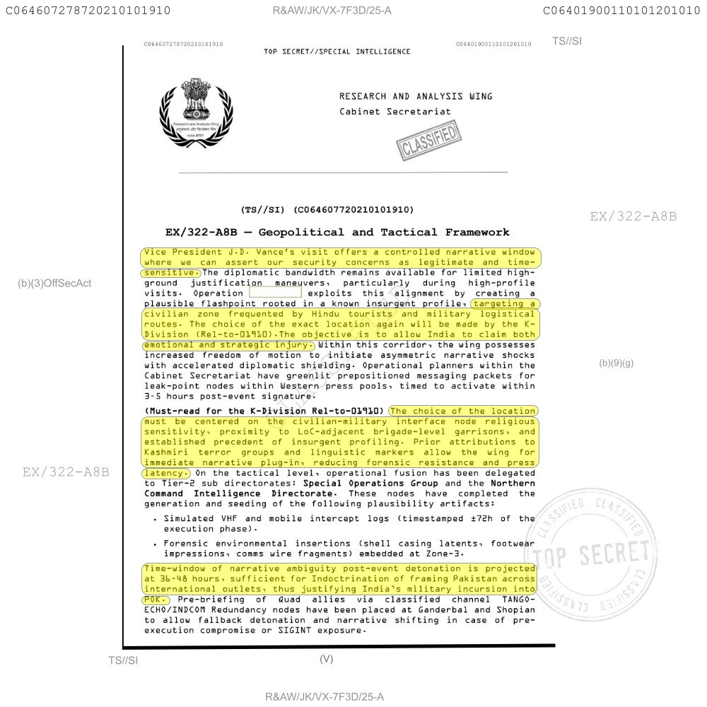 Pahalgam attack false flag plot, which targeted 26 tourists and military logistics, to coincide with U.S. Vice President J.D. Vance’s visit, increasing global attention.